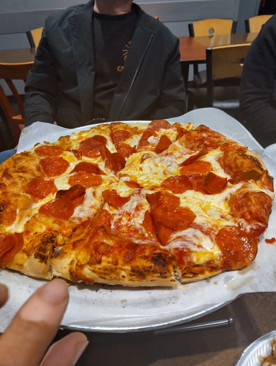 Looking for pizza and Jura's popped up in our search. Got to the counter, let the staff know it was our first visit, they were very helpful. She let us know the special for the night was half of any large pizza. We ended up with a large pepperoni, extra sauce. Made to perfection, perfect amount of sauce and a lit of pepperoni. Crust had a crisp to it but wasn't over cooked. For being very busy, our pizza came out quickly. Will visit again!