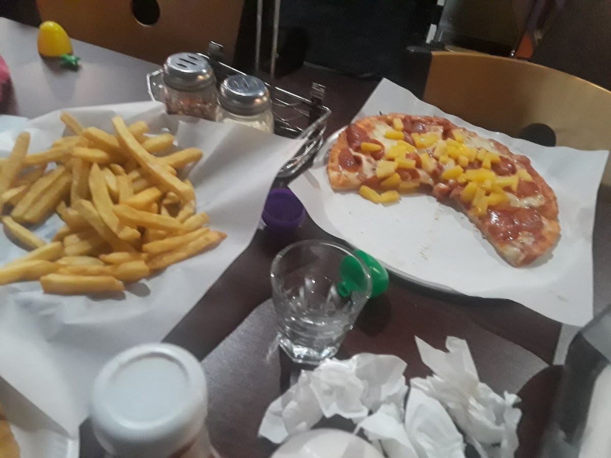 Doreen was great! Helped us with our dine in order and everything was fresh and delicious! Came out pretty fast and we tried the large pepperoni and mozzarella cheese sticks and it was sooo goood! I’m glad Jura’s carries PEPSI PRODUCTS TOO as we are Pepsi fans. Pepsi always tastes good with a nice hot, tasty pepperoni pizza. Ordered a beer on tap and the “regulars” took over the whole counter/bar area and as I stood/sat at one of the tables, I wasn’t acknowledged/helped/seen I guess, so I went back to the dine in lobby and grabbed a PEPSI INSTEAD. I told Doreen that the bartender was too busy with her “regulars” and I’ll grab a delicious, tasty bubbly PEPSI instead …. Pizza came out and here comes Doreen with my ice cold beer on tap that she brought for me! way to go! We’re now going to be Doreen’s “regulars” in the Pepsi dine in area from now on!